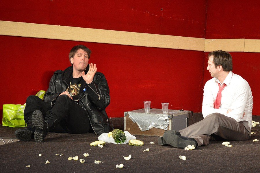 Единственный отход от классического театра и реверанс в сторону эстрады — выход актёра в зал. Он приглашает девушку поцеловать, «оживить» своего товарища по несчастью. Смотрится это очень органично, не мешая развитию сюжета.